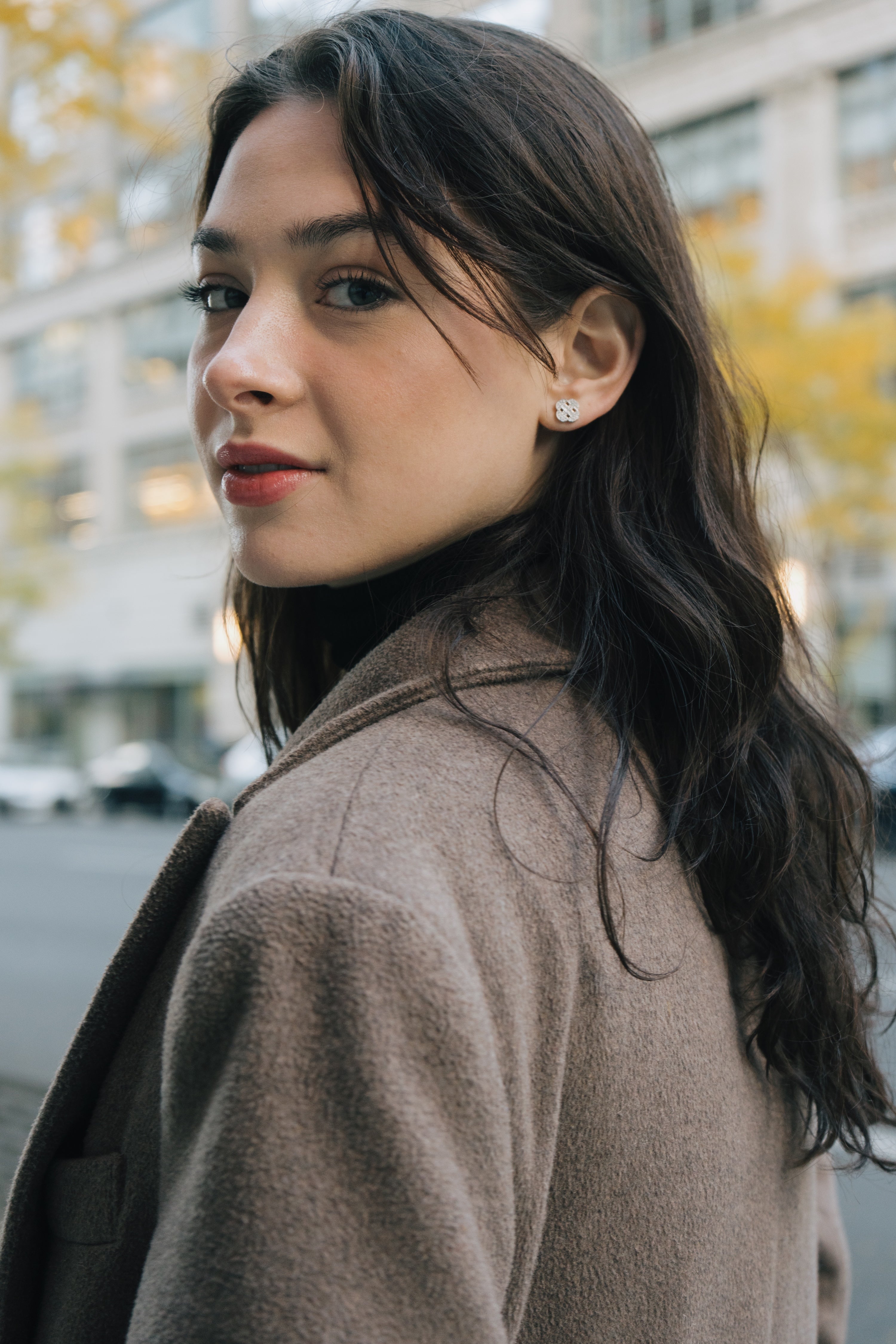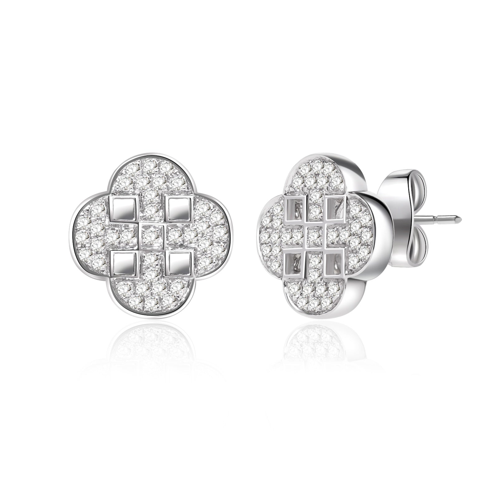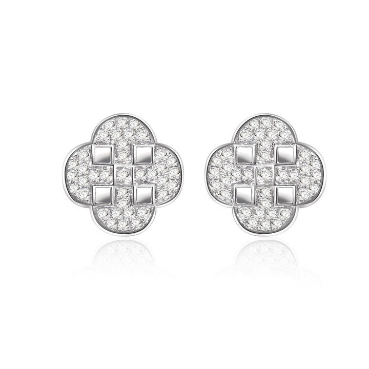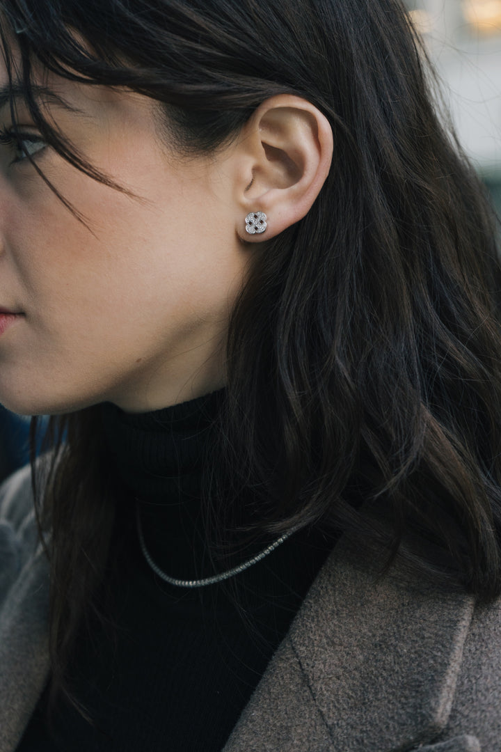 Each earring is hand-finished with a pavé grid center, a subtle contrast that plays with structure and shimmer, merging modern craftsmanship with classic symbolism.